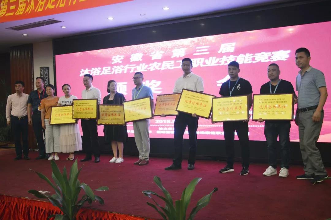 授予安徽省沐浴足疗保健行业协会、温州周天健康管理有限公司(合肥分公司)、阜阳天福源足道养生会所、芜湖御江南足道养生连锁机构、深圳如果艾健康投资管理有限公司、安徽民医堂手足病研究所等单位全省第三届沐浴足浴行业农民工职业技能竞赛“优秀组织单位”荣誉称号。